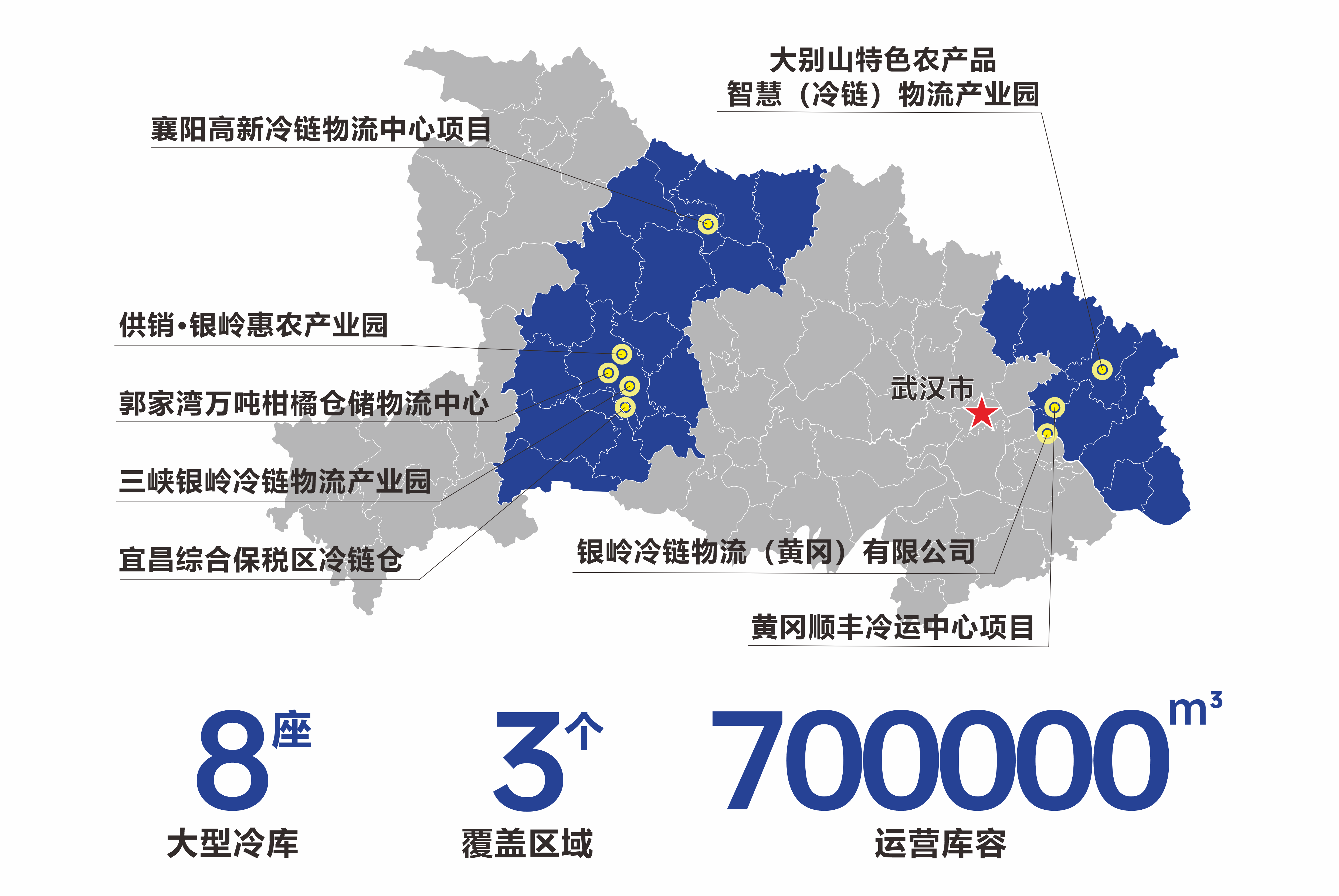 為促進(jìn)冷鏈物流的發(fā)展,快速響應(yīng)“強(qiáng)基礎(chǔ)、補(bǔ)短板”的政策號(hào)召,公司實(shí)施了覆蓋省域的冷鏈物流戰(zhàn)略布局,采取“管理+服務(wù)+技術(shù)”輸出的方式,以三峽銀嶺冷鏈物流產(chǎn)業(yè)園為中心,覆蓋宜昌、黃岡、荊州、恩施、襄陽等地的湖北省三級(jí)冷鏈倉儲(chǔ)物流體系正在加速構(gòu)建。先后入駐了宜昌綜保區(qū)保稅倉、宜昌供銷·銀嶺惠農(nóng)產(chǎn)業(yè)園、郭家灣萬噸柑橘倉儲(chǔ)物流中心、襄陽高新冷鏈物流中心、黃岡順豐冷運(yùn)中心、黃岡冷鏈分中心、羅田大別山智慧物流園區(qū)等7個(gè)園區(qū),截止目前,冷庫現(xiàn)有庫容量達(dá)70萬立方米,冷庫容量規(guī)模居全省第一。日均冷鏈物流運(yùn)量達(dá)到800噸,輻射半徑超過600公里,常年儲(chǔ)備柑橘等各類果蔬產(chǎn)品3萬噸;同時(shí),也成為國(guó)家肉類儲(chǔ)備基地,承擔(dān)宜昌、珠海、荊州、黃石4個(gè)地級(jí)市的儲(chǔ)備肉項(xiàng)目。三峽銀嶺冷鏈的快速發(fā)展,帶動(dòng)了華中、西南地區(qū)及長(zhǎng)江中上游地區(qū)農(nóng)副產(chǎn)品的加工、貯藏、運(yùn)輸、銷售,也成為城市保供、應(yīng)急儲(chǔ)備的重要平臺(tái),是鄂西南地區(qū)第一家專業(yè)冷鏈物流企業(yè),是豐富宜昌市、夷陵區(qū)產(chǎn)業(yè)結(jié)構(gòu)的重要組成部分。